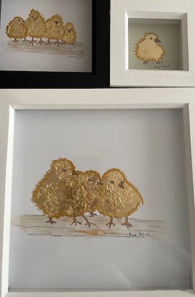 My gold chickens are available at Aqualibrium Gallery on the Duver, St Helens. I've started a new range of chicks which may appear there... (see below). Aqualibrium is open weekends in these early weeks of the year. Always worth a visit.