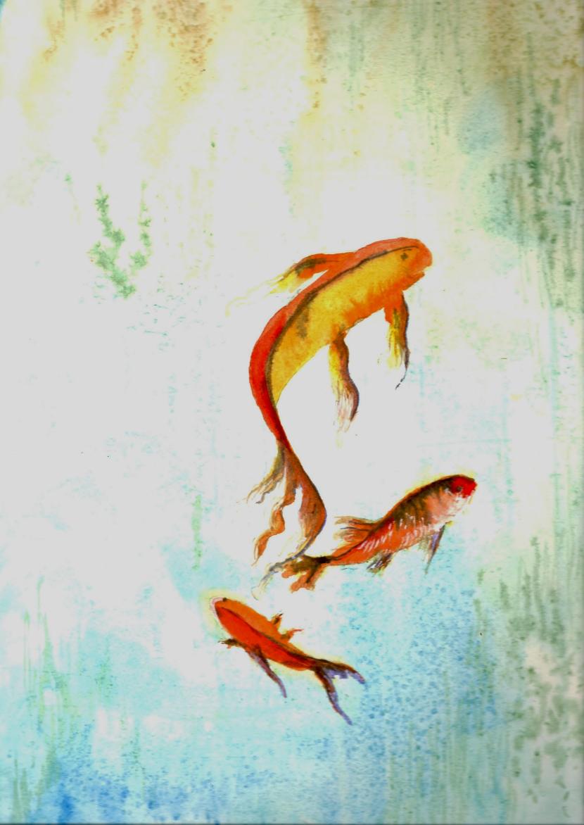 A winter tree with fox - painted as an exercise for a watercolour class.